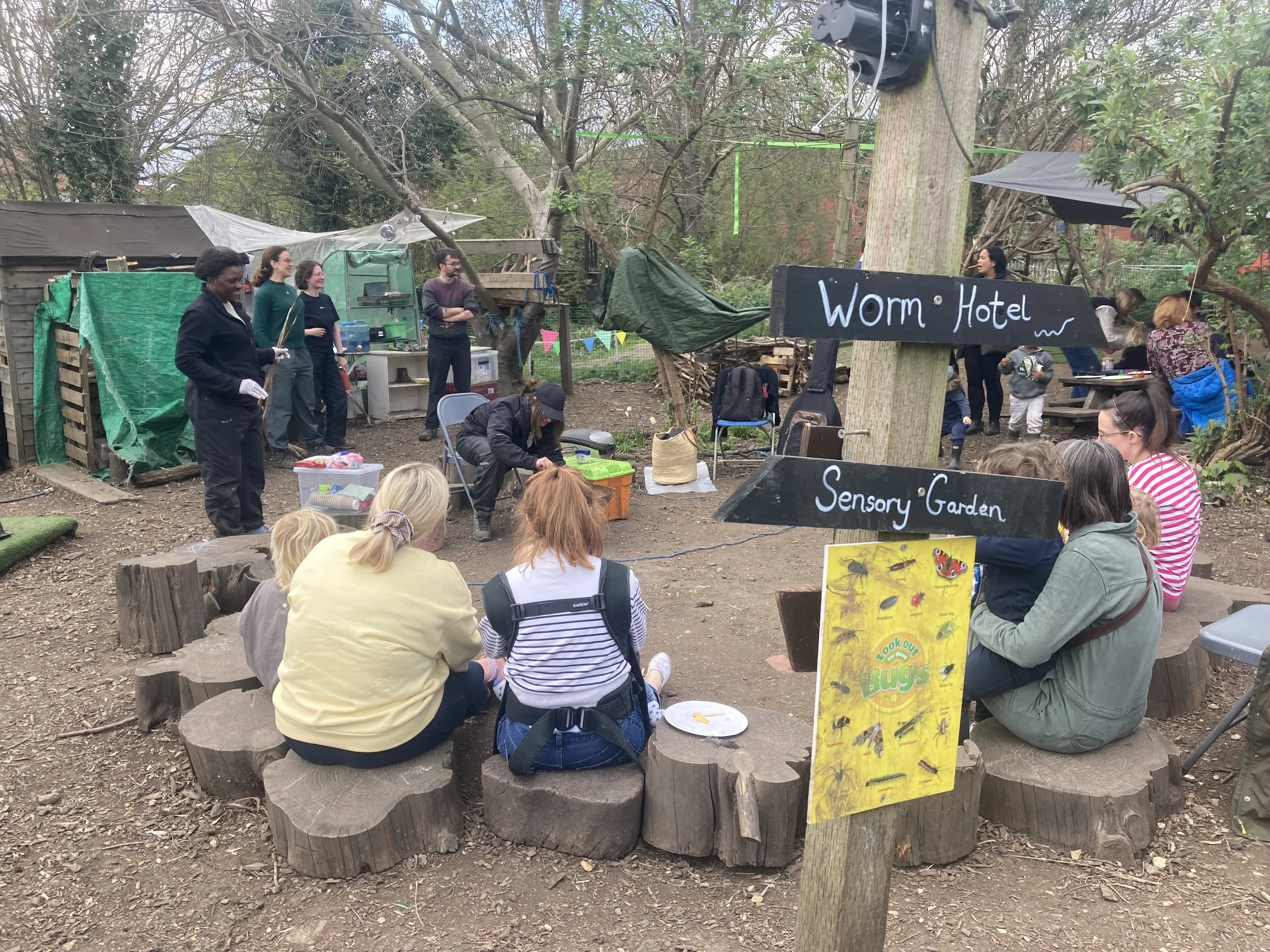School Outdoors Dulwich performed in their log circle as one big group while Under the Willow split into three smaller groups – babies, toddlers and preschoolers.